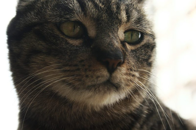 现在看猫了!小金刚不在,大灰猫倒是跑了过来,没得拍的,也给它来几张吧。K,还真神气。